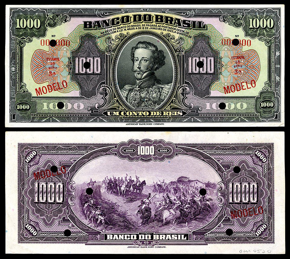 Imagem reprodução da Nota de mil-réis. Esta obra é livre e pode ser utilizada por qualquer pessoa, para qualquer finalidade. Ver imagem original no Wikimedia Commons para mais informações