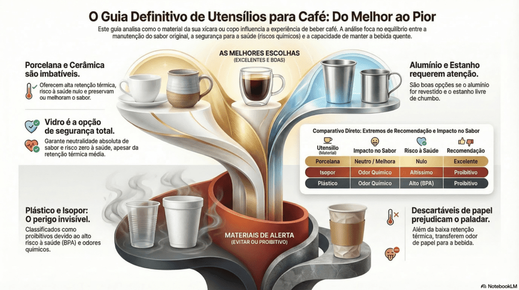 E, preventivamente, a ciência dos materiais nos alerta: o prazer de um bom café não deve ser comprometido pela conveniência de um copo de plástico ou isopor, que degradam tanto o paladar quanto a saúde a longo prazo.
