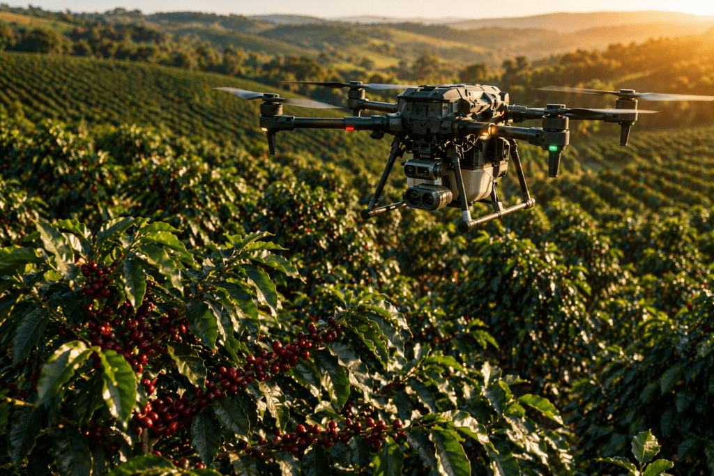 O futuro da IA no café não é sobre robôs humanoides colhendo grãos, mas sobre uma inteligência “invisível” integrada a cada engrenagem da indústria.