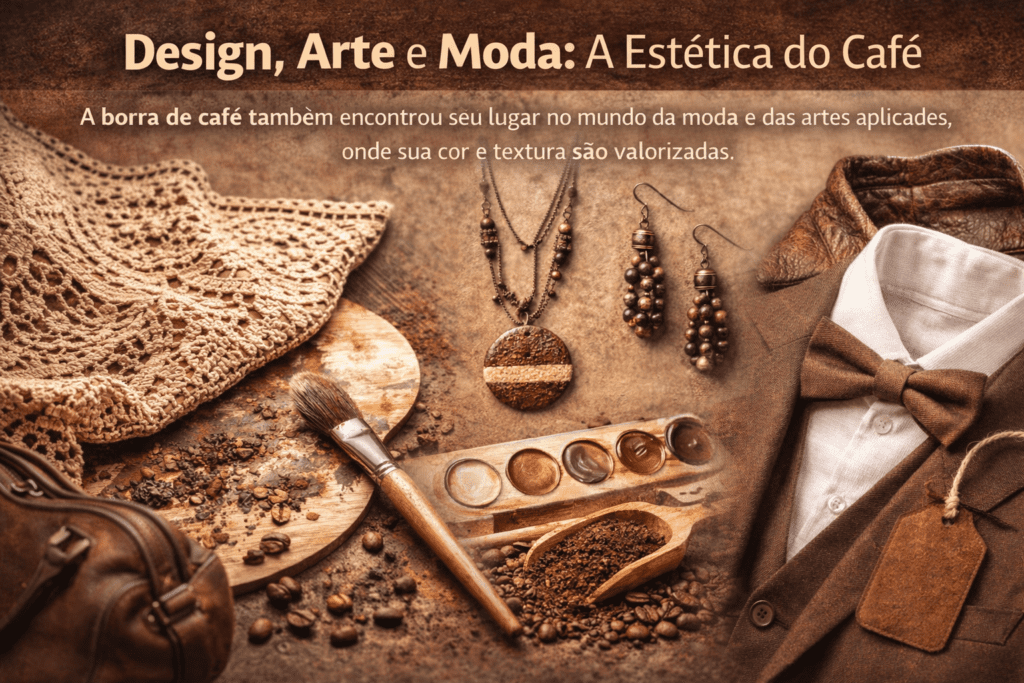 A borra de café também encontrou seu lugar no mundo da moda e das artes aplicadas, onde sua cor e textura são valorizadas.